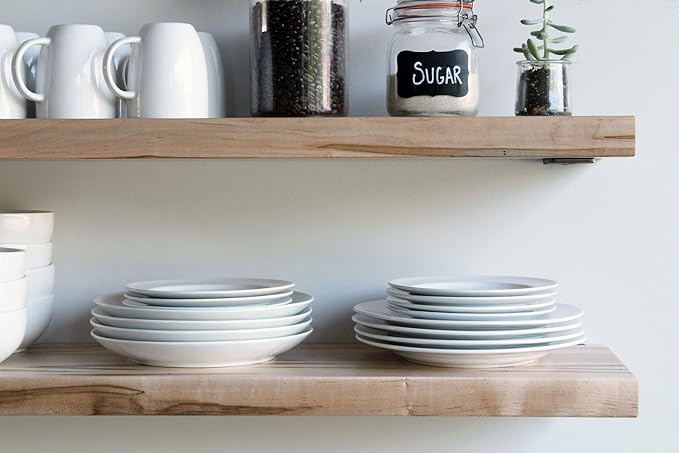 Urban Legacy Deep Floating Shelves | Wormy Maple with Furniture Grade Clear Coat | Low Profile Brackets | Set of 2 (48" x 11" x 2")