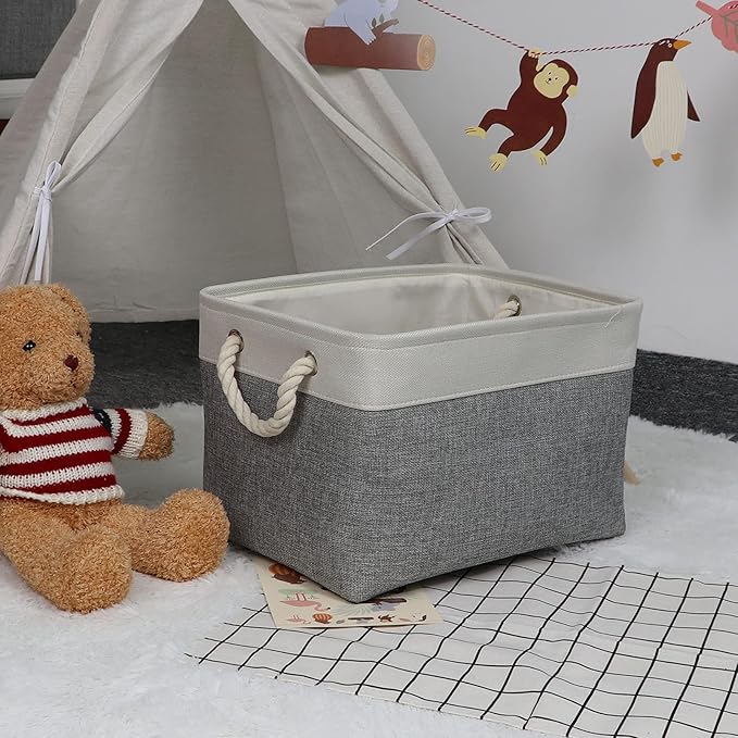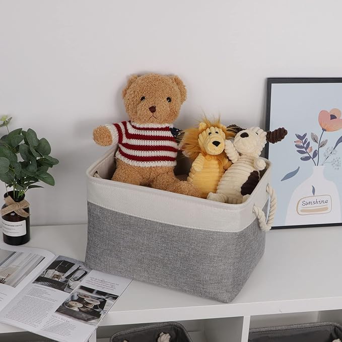 - Cotton Rope Handles and Premium Fabric: Soft handle will give you a very comfortable grip feeling, will not feel strangled hands, more easier to use the linen basket. The canvas storage bins equipped with soft and sturdy handles for moving conveniently. Sturdy soft handles on both sides are convenient to retrieve from shelves. These storage baskets are made of durable fabric which is strong and lightweight