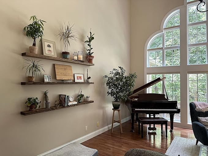 - Sturdy & Spacious: Built to last with high-quality, solid wood, our long wall shelves have a full 6-inch depth, offering plenty of room for books, plants, décor, and more. The heavy-duty construction ensures your treasures are safe and secure.