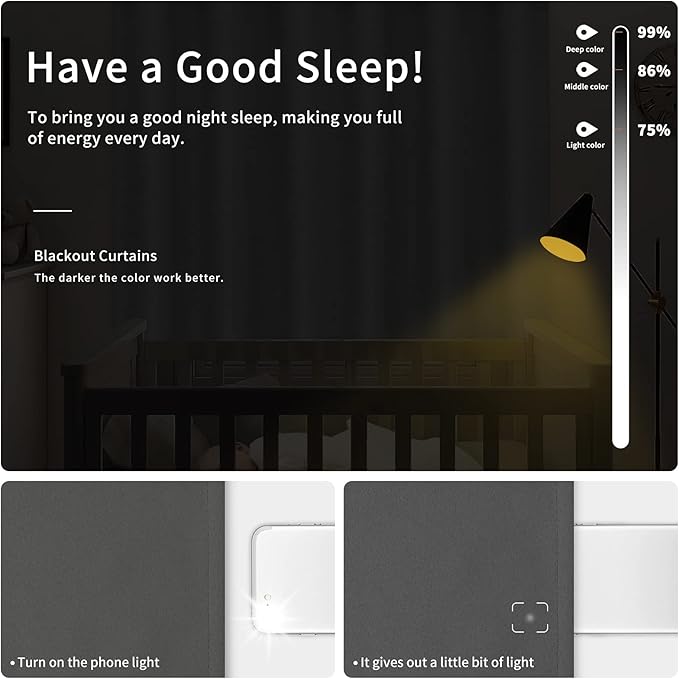 - Multiple Functions: Our curtains can block out sunlight and UV ray ( Darker colors work better), insulate against summer heat and winter chill to balance your room temperature, cut down energy bills. Reduce outside noise, privacy protection, create a good working and sleeping environment for you.