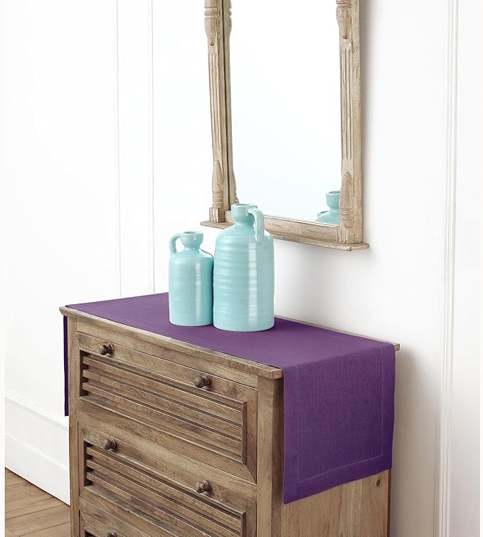 Solino Home Linen Purple Table Runner 60 Inches - Classic Hemstitch, 100% Pure Linen Coffee Table Runner 14 x 60 Inch Ideal for Dresser Tables - Fall, Autumn, Halloween, Thanksgiving