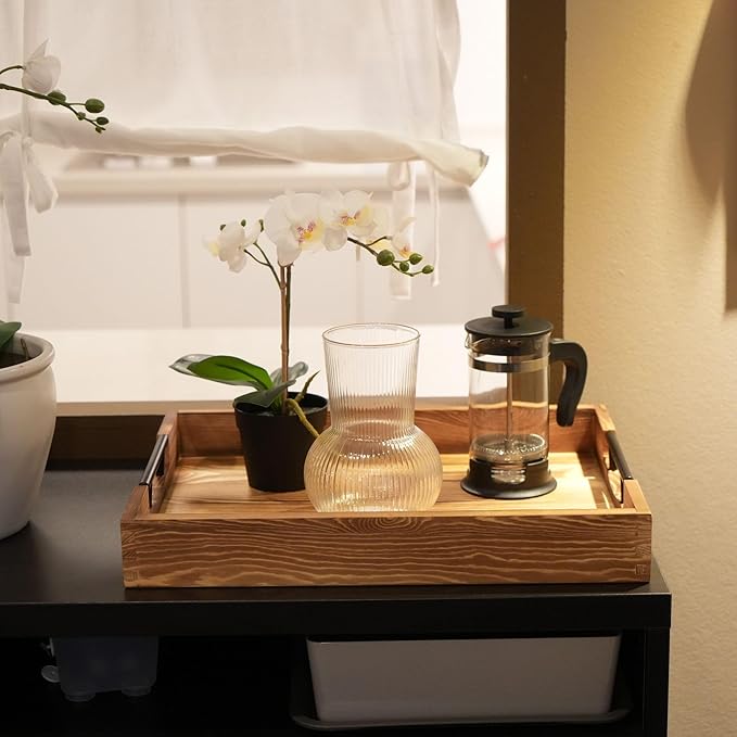 - Quality Craftsmanship: Our wooden tray with handles is made of pine wood, made with strong finger joints, ergonomic grip handles, smooth sanded corners & edges; Built strong for long-lasting use