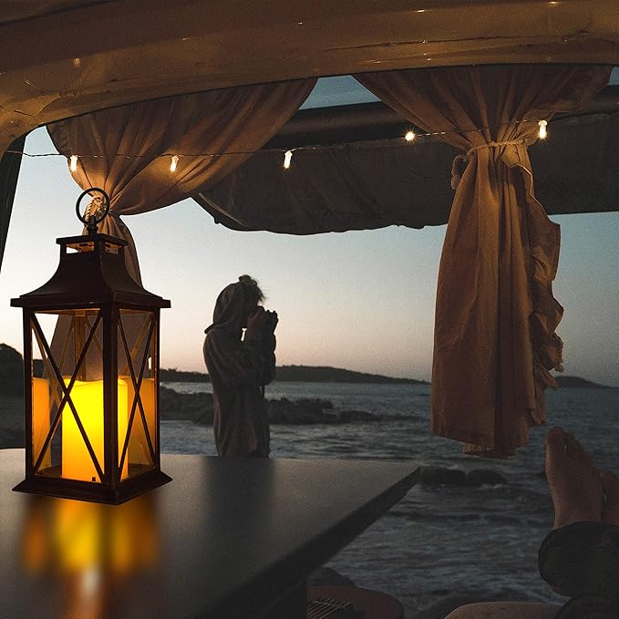 - MIDIUM SIZE: 13" in height and 5.6" in side length, this standard size design is in line with the aesthetic sense of advanced. Clear glass panes, hanging ring on top with a big LED ivory candle with wavy edge. No matter it is flat on the ground or hanging in the air, there is a strong elegant retro style. Suitable for these occasions no matter indoor &outdoor: pathway, shelf, bar, table, photo booths, patio, porch, garden, windowsill, dating desktop, beside the sofa, etc.