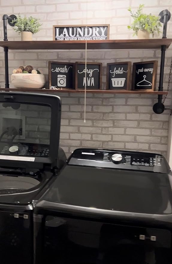 - 【Retro Industrial Style】Extremely sturdy and heavy duty vintage style pipe shelf.The black galvanized pipes with solid wood look rustic,add a touch of vintage farmhouse to your home.