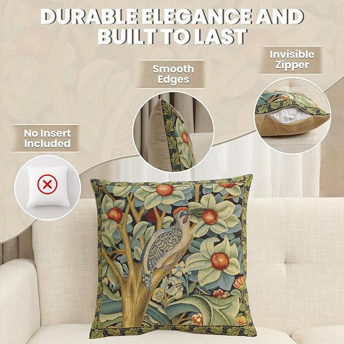 - Exclusive Design Excellence: The decorative pillow covers are made of high-quality jacquard woven fabric, 100% cotton for extreme comfort and durability. The designs of these William Morris pillow covers are woven with precision using the most vibrant colors. The zippers are hidden and overlock stitch seams create an appearance of sophistication while providing durability for any home decor