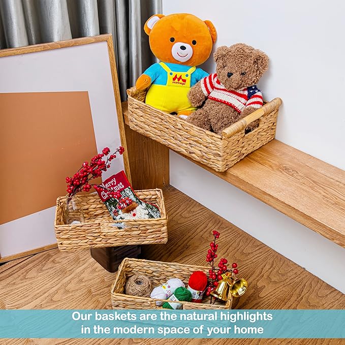 - ✅ Decorative Wicker Baskets: Natural water hyacinth basket is an easy and affordable way to change the style of your home. With their natural design, the wicker basket makes nice neutral backdrops and can brighten your day as well as impress your guests.