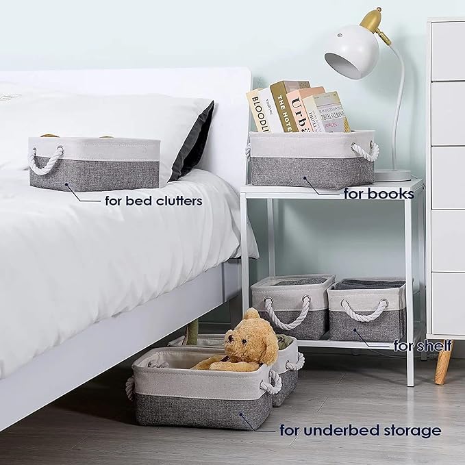 - It includes 10 pack small storage baskets. Sophisticated and practical. Used as closet organization bins, room storage boxes, living room, laundry organizing, basement, cat & dog supplies holder, nursery, clothes basket, , garage storage, book and magazine organizer, makeup basket, bathroom towel and toilet storage, shelf fabric drawers and many other uses