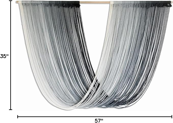 - Material: 100% Cotton macrame cord,With Eco-friendly organic dye. Size: Dimensions: 57" Wx 35" L-Large macrame yarn wall hanging