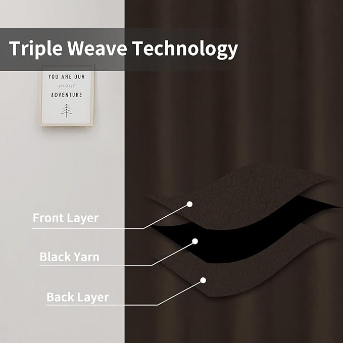 Easy-Going Blackout Curtains for Bedroom, Solid Thermal Insulated Grommet and Noise Reduction Window Drapes, Room Darkening Curtains for Living Room, 2 Panels(46x63 in, Dark Brown)