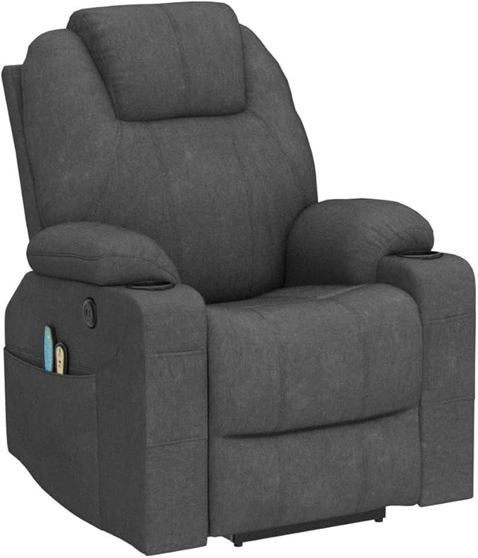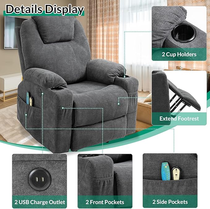 - 【USB Charging Ports & Cup Holders】 - With the USB charging ports, keep your must-have devices fully charged and close to you.(Note: The USB ports only for low-power devices, such as phone, iPad or headset). Come with dual side pockets and front pockets for small items or magazines within reach, two cup holders on both sides of armrests to set your drinks, good for taking a rest or watching TV, reading on bedroom, living room