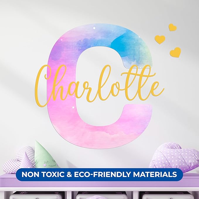 - 🔨 FULLY CUSTOMIZABLE WALL DECALS FOR GIRLS BEDROOM: Transform your child's space with a fully customizable name decal. Explore a spectrum of fonts, colors, and sizes to create a wall sticker that harmonizes seamlessly with the unique aesthetic of the room. This personalized touch elevates the overall ambiance of your girls' bedroom, ensuring a decor that is both stylish and distinctive. ATTENTION: THE ELEMENTS ARE NOT INCLUDED, YOU SHOULD ADD ON CUSTOMIZATION SECTION.