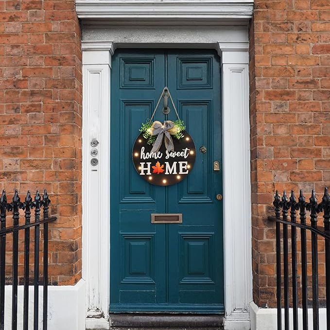 - HOME SWEET HOME SIGN WITH WARM LIGHT - Door decorations hanging outdoor Welcome sign surrounded by 12 LEDs which creates a warm atmosphere at night, It bringing strong holiday atmosphere will not just decorate your home but also catch your guests eyes.