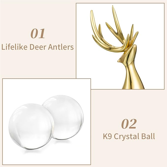 - ABOUT SIZE- The package comes with 2 pieces reindeer sculptures, with one standing (23.5cm/9.5″ high and 11.5cm/4.5″ wide) and one lying (15.5cm/6.1″ high and 10cm/3.9″ wide), each has a 5cm/1.97″ crystal ball on their heads.
