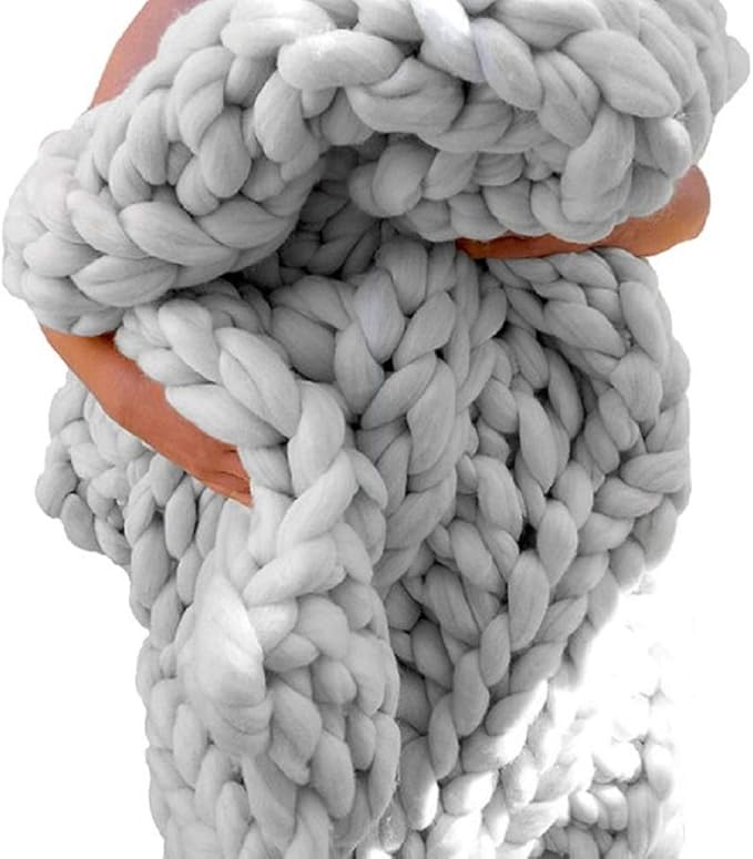Chunky Knit Blanket Soft Handmade Knitting Throw for Bedroom Sofa Decor Super(Light Gray 60"x60")