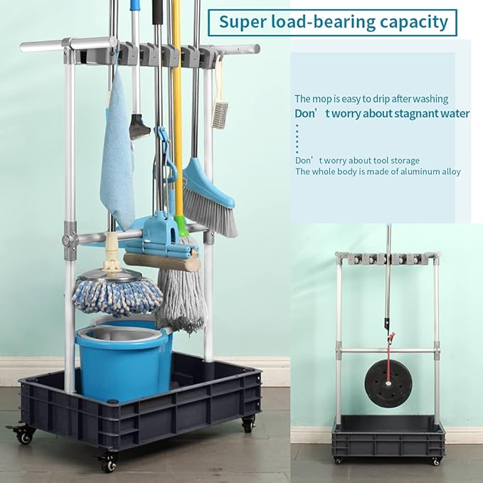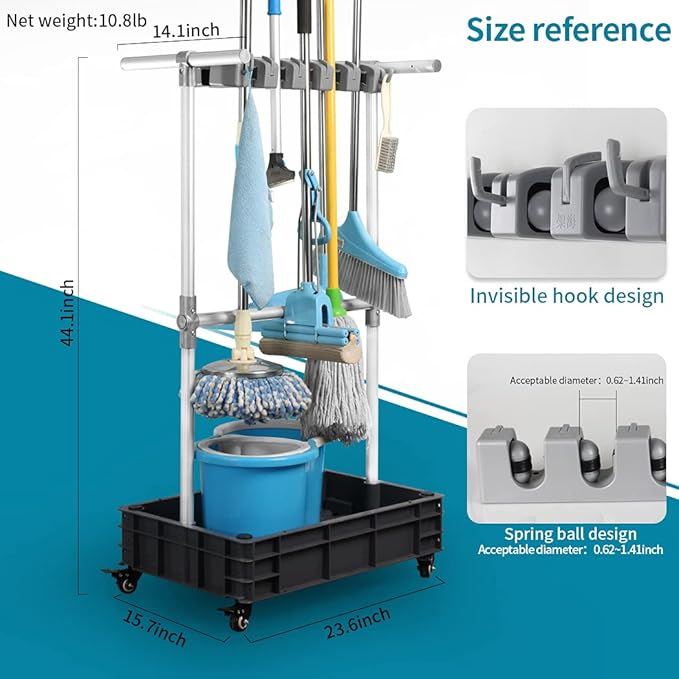 - 1、A nice little cart that holds your cleaning supplies,Keeps brooms and mops organized