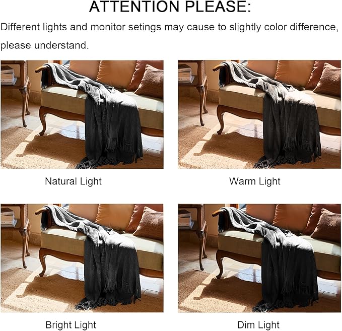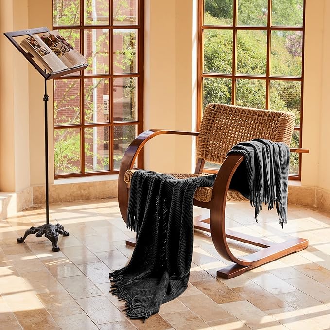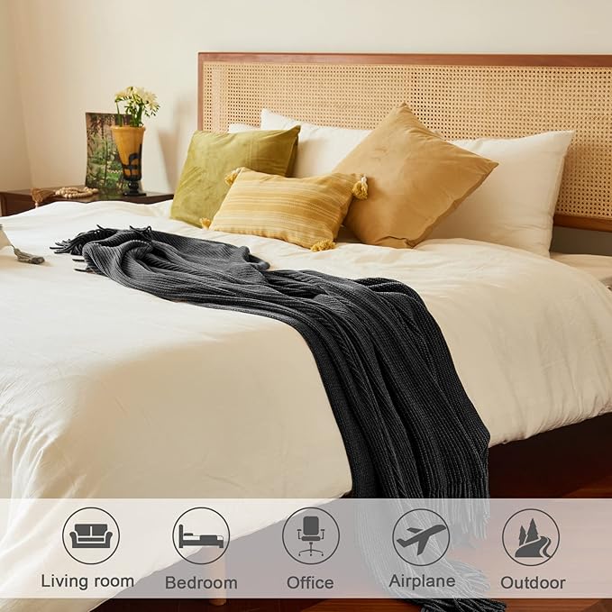 lifein Throw Blanket for Couch, Soft Boho Decor Bed Throw,Cozy Grey Knitted Chenille Small Farmhouse Lightweight Throw for Spring(Dark Grey,50 * 60")