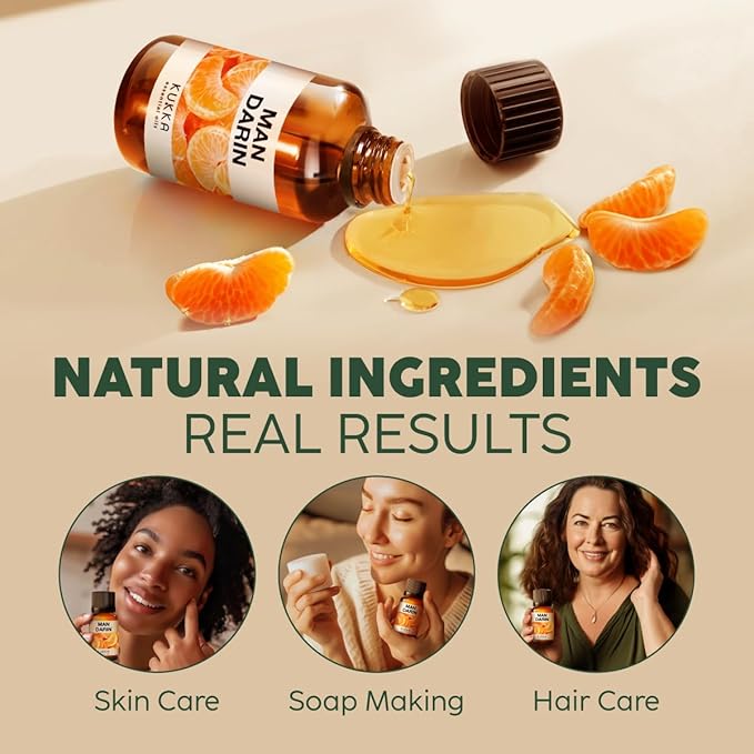 Kukka Mandarin Essential Oil for Diffuser Skin - 0.34 Fl Oz - 100% Pure Natural, Fresh & Citrusy Scent for Aromatherapy,Candle, Bath Bomb & Soap Making Scent DIY