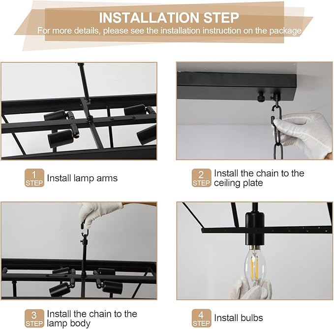 - EASY INSTALLATION: The package of the crystal chandeliers for dining room contains all the installation accessories, we also provide detailed installation instructions, please follow the instructions to install, very easy