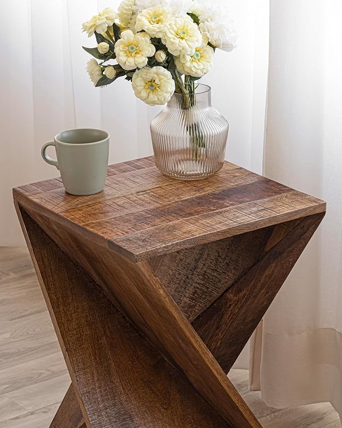 - Handmade: One-of-a-kind expertly carved from a single piece of sustainably sourced plantation Mango wood living room side table