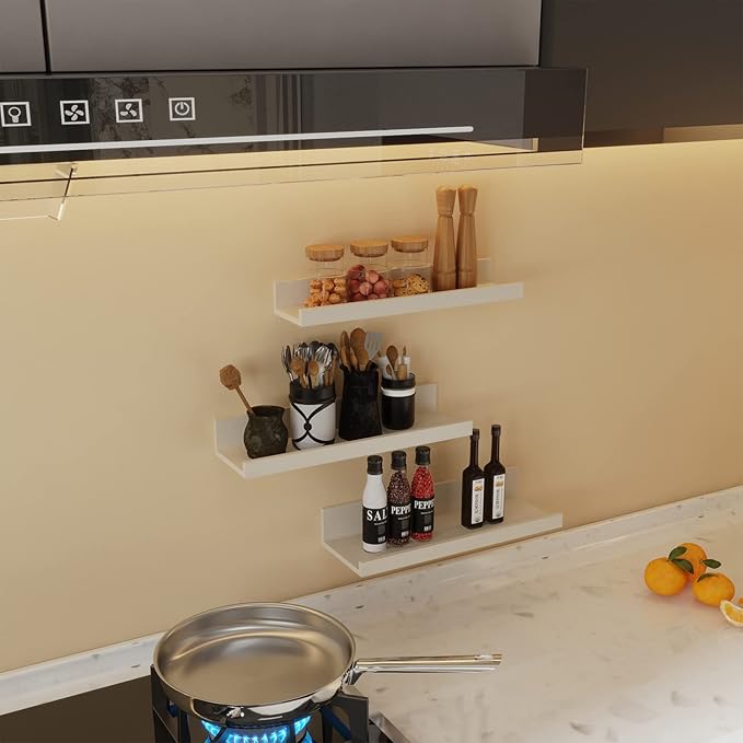 - Practical Design: You can use these floating wall shelves to free up counter space or display some collections, pictures, jars, nursery books, decorations from bedroom to kitchen and bathroom. The front lips on the display ledge shelves keep items from falling off or sliding forward easily.