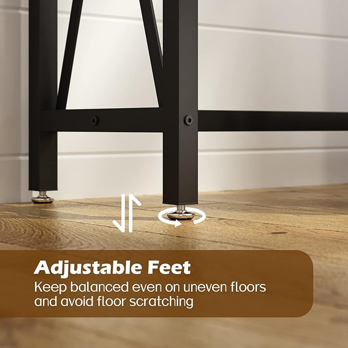 - 【Rustic Meets Industrial Charm】The warm wood grain of the living room console table pairs perfectly with the matte black frame, creating a stylish blend of cozy farmhouse and modern edge that fits effortlessly into any home decor