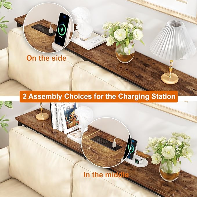 - 【Multiple Sofa back Charging Options】No more diving behind the sofa for an outlet! This sofa table features 2 AC outlets, 1 USB, and 1 USB-C port, perfect for charging your phone, lamp, speaker, or laptop right where you need it, whether behind your couch, in the hallway, or by the entry