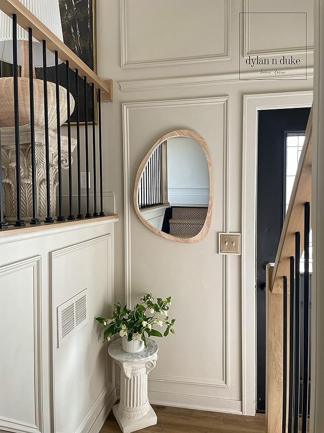 Irregular Wood Frame Boho Mirror - Large Wall Mounted Accent, Asymmetrical, Modern Aesthetic Wall Decor for Bedroom, Entryway, Living Room, Bathroom (Natural)