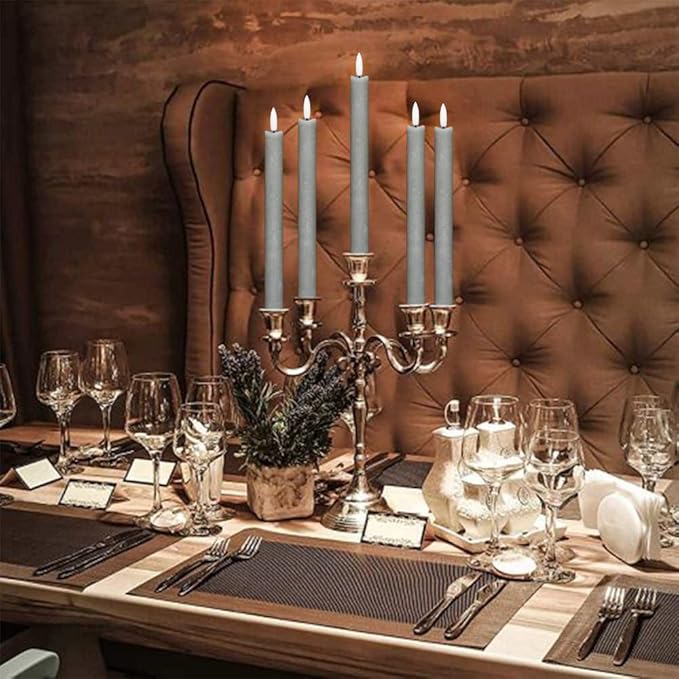 GenSwin Flameless Grey Taper Candles Flickering with 10-Key Remote, Battery Operated Led Warm 3D Wick Light Window Candles Real Wax Pack of 6, Christmas Home Wedding Decor(0.78 X 9.64 Inch)