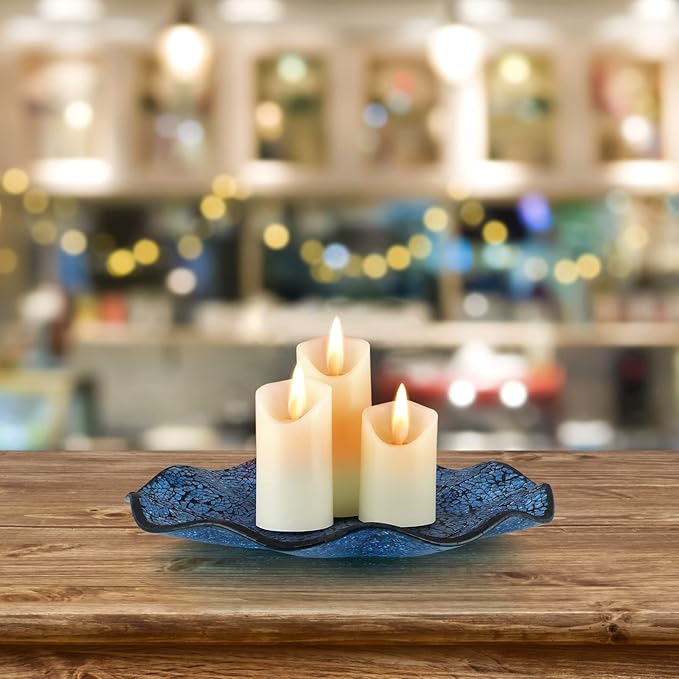 MDLUU Mosaic Centerpiece Tray, 12" Decorative Glass Plate, Home Decor Glass Bowl for Dining Room Table, Coffee Table, Gift (Turquoise)