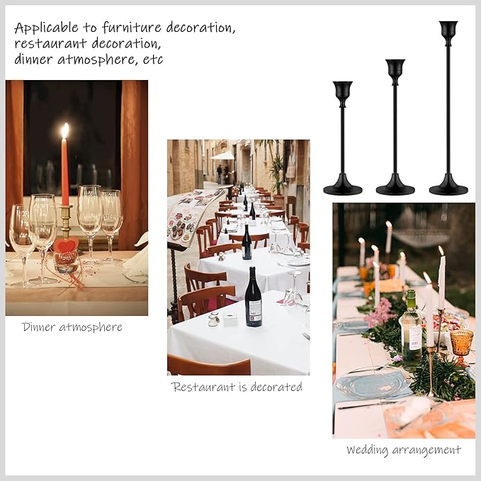 - 💕【Stunning Contrast】Our taper candle holder set includes three different sizes to create a stunning display. Three different heights of candle stick long holder designed with European retro metal create an elegant visual effect and bring you a romantic atmosphere.