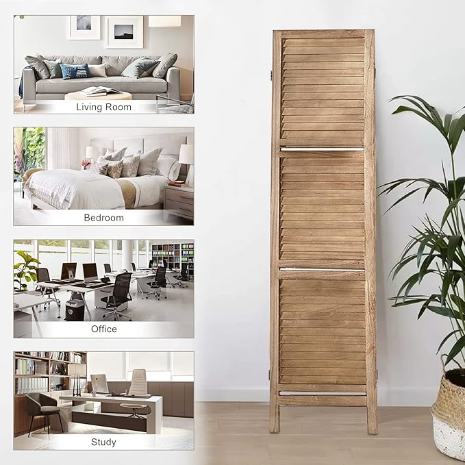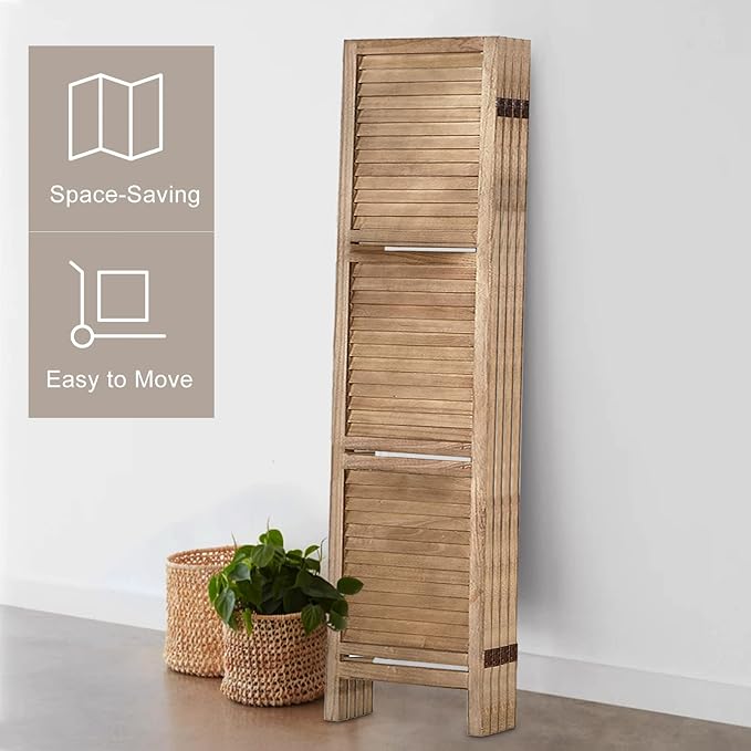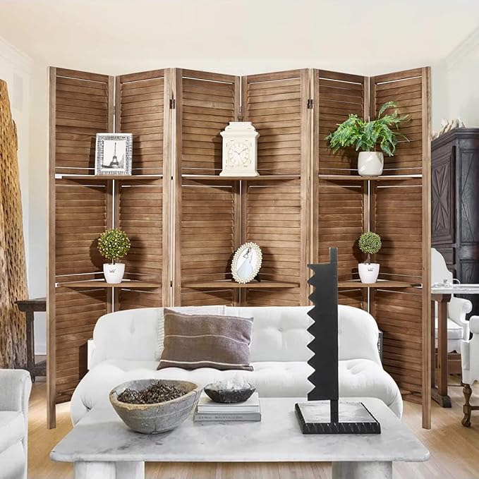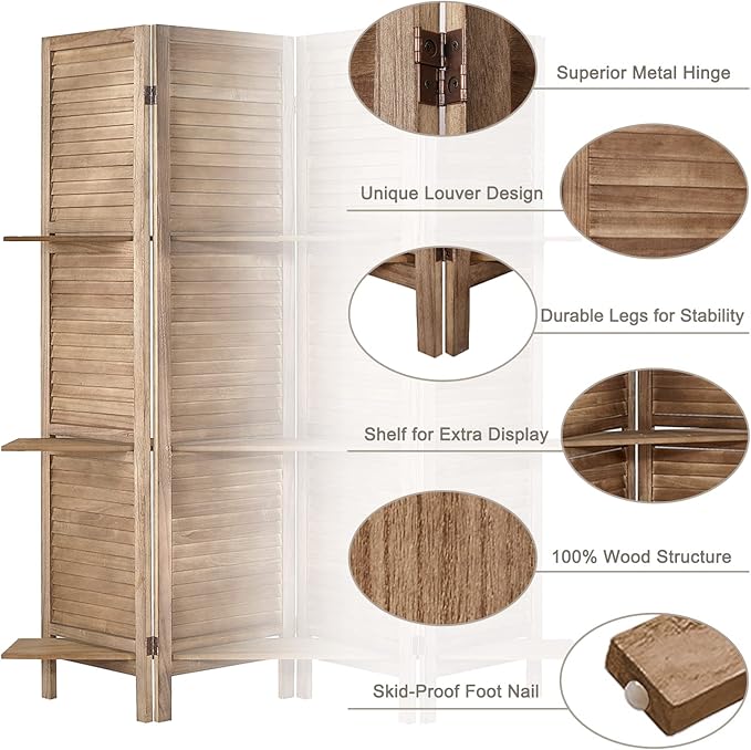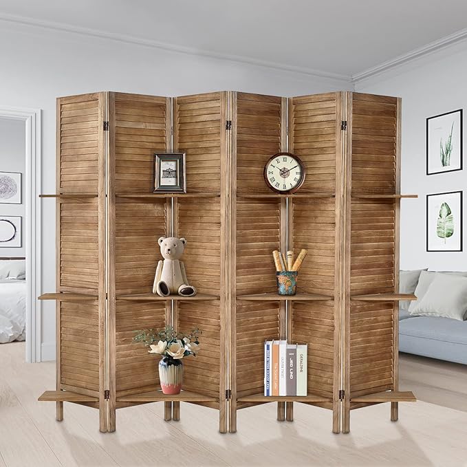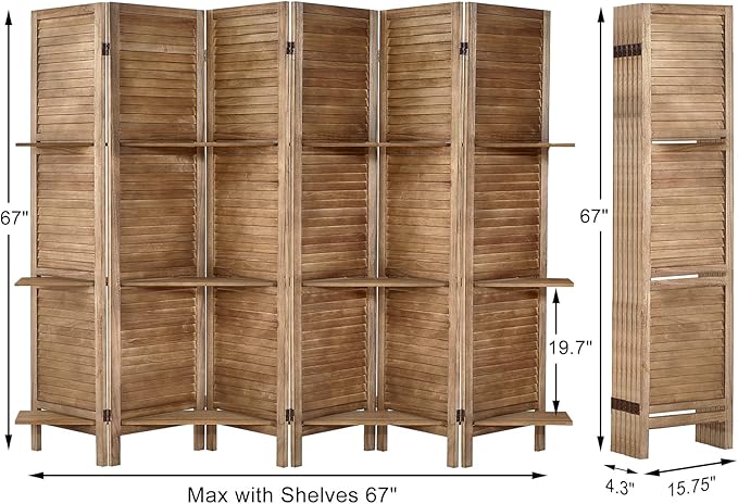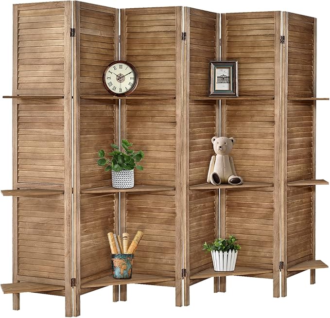 - Room Dividers with Shelves: The portable panel screen is built on solid wood, features a stylish louvered slat with 3 manufactured wood shelves to display your favorite decoratives while creating a smaller enclosed private space within a corner or along a wall.