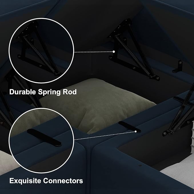 - Invisible Storage Spaces: Each seat of modular sectional sofa has a hidden storage and the lid automatically stays open in the position so that you can pick out and put back the things you are storing conveniently, which will save spaces and complement the existing interior design. Storage dimensions: 22.40''(L)*22.40''(W)"*5.70"(H)