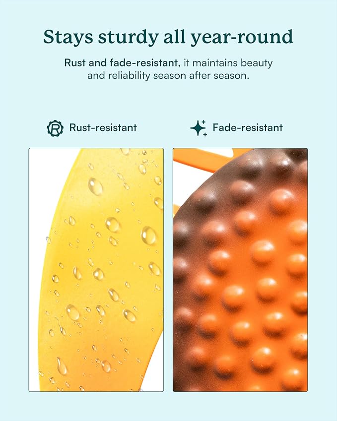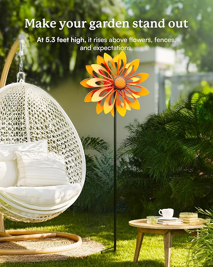- 【Durable Weather-Resist Construction】Made of sturdy iron with a rust-resistant finish, this decorative spinner withstands sun, rain, wind, and other bad weather. The protective coating ensures UV and fade resistance for year-round beauty with minimal maintenance.