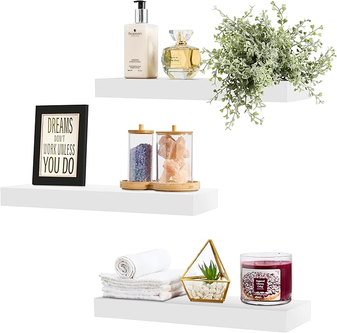 Sorbus Floating Shelves for Wall, Bathroom Shelves Wall Mounted for Kitchen, Bedroom, Bathroom Storage Over Toilet, Hanging Book Shelf for Wall Home Decor Living Room (White, 3 Pack)