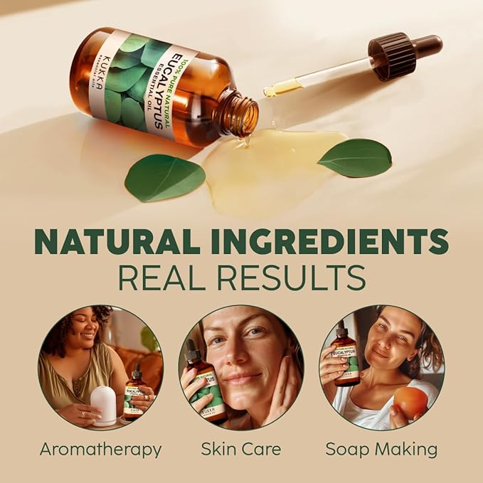 KUKKA essential oils 100% Pure & Natural Eucalyptus Essential Oil for Diffuser, Humidifier, Skin, Hair & Soap Making DIY(4 Fl Oz/118 ml)