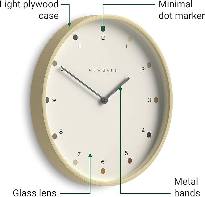 NEWGATE® Mr Clarke Wall Clock | Large Scandi Inspired Plywood Clock | 16 inch | Pale Wood case with Designer dot dial | Modern Minimalist Design for Kitchen, Living Room or Office