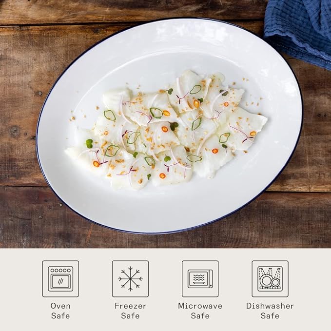 Made In Cookware - Serving Platter - White With Navy Rim- Porcelain England