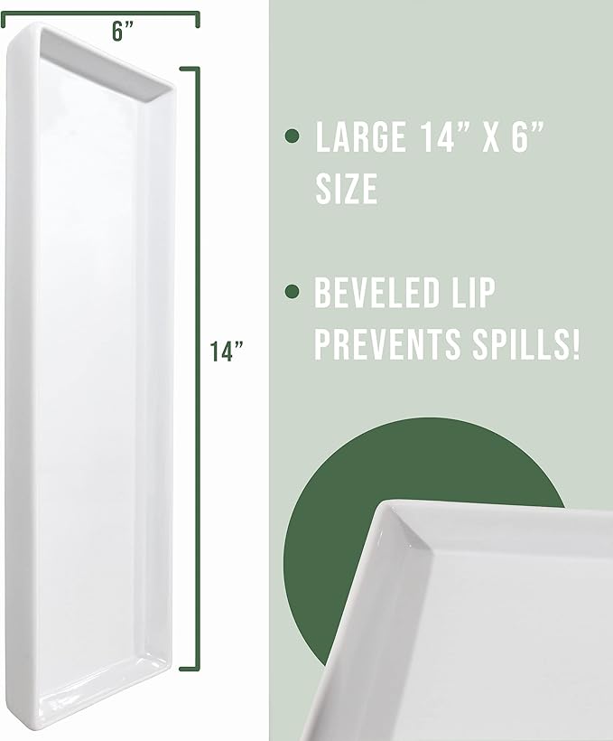 - Set of 4 Ceramic Trays – Uniquely and beautifully designed rectangular ceramic serving trays that are great for any occasion; Beautiful glossy white color will match any of your home’s decor; Each dish is 14” x 6”