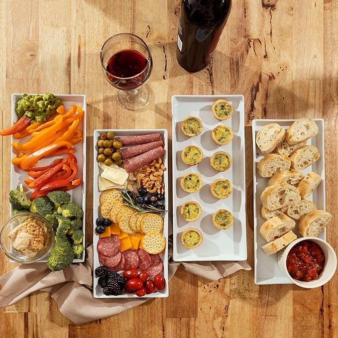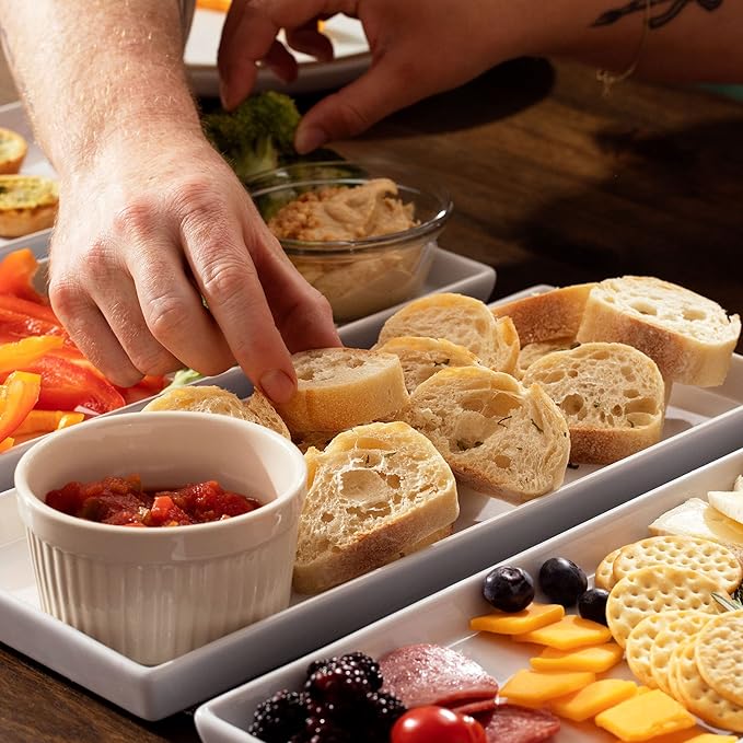 - Durable Rectangle Plates – Each serving dish is made with a thick, highly durable ceramic material to prevent them from cracking or breaking; The appetizer serving trays also feature a lip