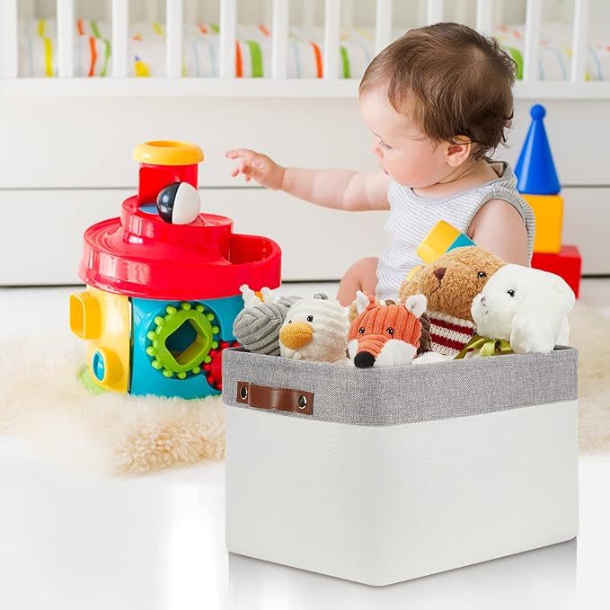 - 【Modern & Decorative】The fabric baskets for storage with neutral colors can match a lot of home styles - keeping your home nice and tidy. Fabric storage baskets for shelves ideal for living room, bedroom, bathrooms, utility room, kids room, Nursery Room, craft room, playroom, baskets for gifts empty, shelf, baskets for closets, dorms, condos, laundry room, toilet, or even in the hallway.
