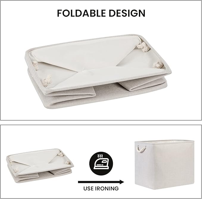 - [Foldable Baskets Set] Simply fold the canvas basket down flat for space-saving storage when not in use or when needing to transport. The basket stays filled for a while and then stays standing. If you mind the creases, you can use an iron to iron the creases in the basket. If you do not use an iron, the creases will slowly disappear as you store your items.