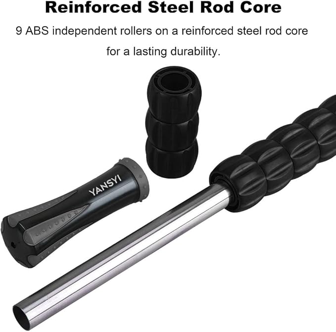 - Great Material and Design: Made from industrial strength materials, thermoplastic rubber and polypropylene handles allow for an ergonomic grip and 9 ABS independent rollers on a steel rod core hit even the smallest pressure points and muscle fibers