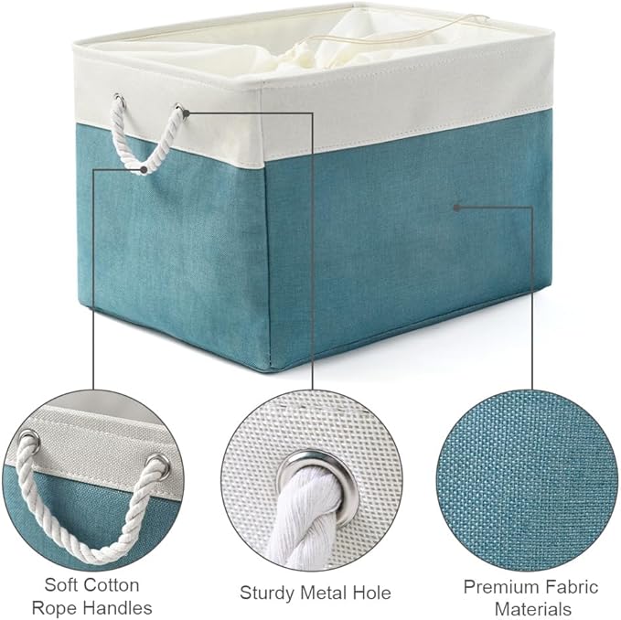 TheWarmHome Storage Bin for Shelves - Extra Jumbo 3 Pack 20.5L×15.7W×13.8H Storage Basket for Organizing, Fabrin Storage cubes with Drawstring Cover for Living Room Bedroom Decor Closet(White & Green