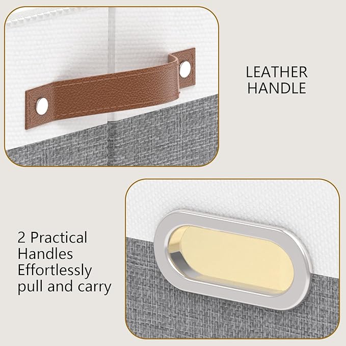 Yawinhe Fabric Storage Bins with Handles, Foldable Baskets for Shelves, Cubes with 3 Handles, Large Boxes for Clothes, White/Grey, 16.9''Lx11.8''Wx10.2''H, 6-Pack