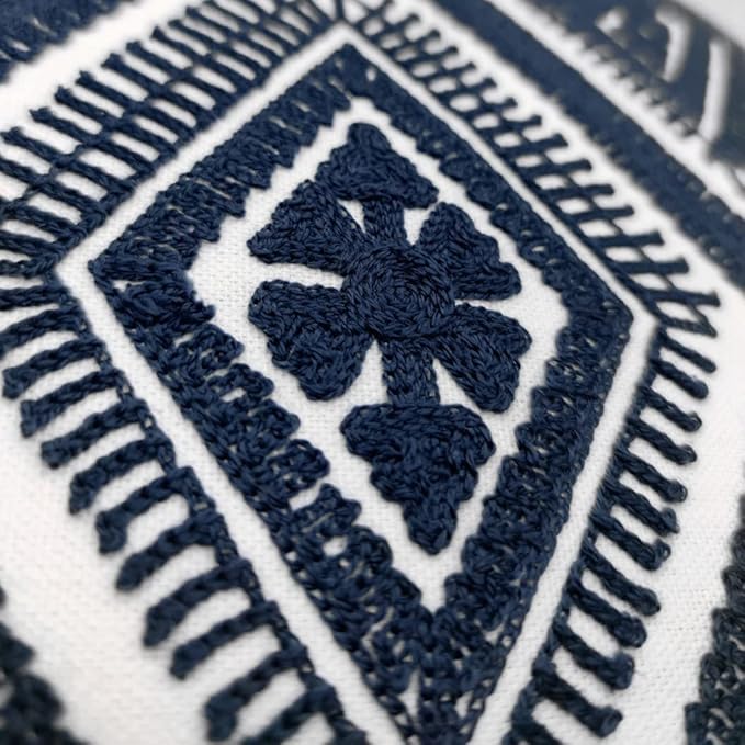 Alysheer Embroidered Decorative Throw Pillow Covers 18x18 inches Set of 2 Pieces, Boho Geometric Modern Chic Classic Pattern Cotton Cushion Cases for Sofa Couch Bed Living Room(Navy Blue)