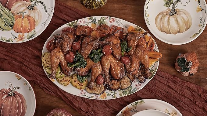 Bico Pumpkin Feast Ceramic 16 inch Oval Platter, Microwave & Dishwasher Safe