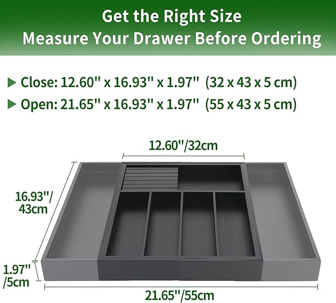 - Adjustable design: VaeFae large silverware holder is expandable from 12.6" to 21.65" wide to fit different drawers; You can expand on one or both sides for customized use
