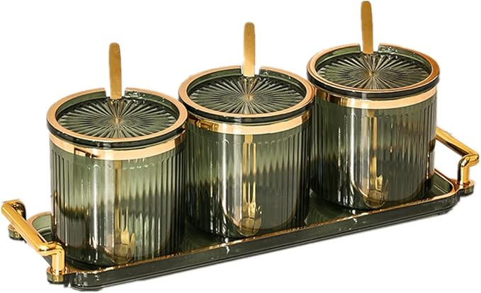 - ▲▲【Material】: Transparent thickened acrylic condiment container, made of PP plastic, equipped with 3 metal spoons and a practical tray with a handle, sturdy and corrosion-resistant, it can be effectively stored while decorating home life, adding color