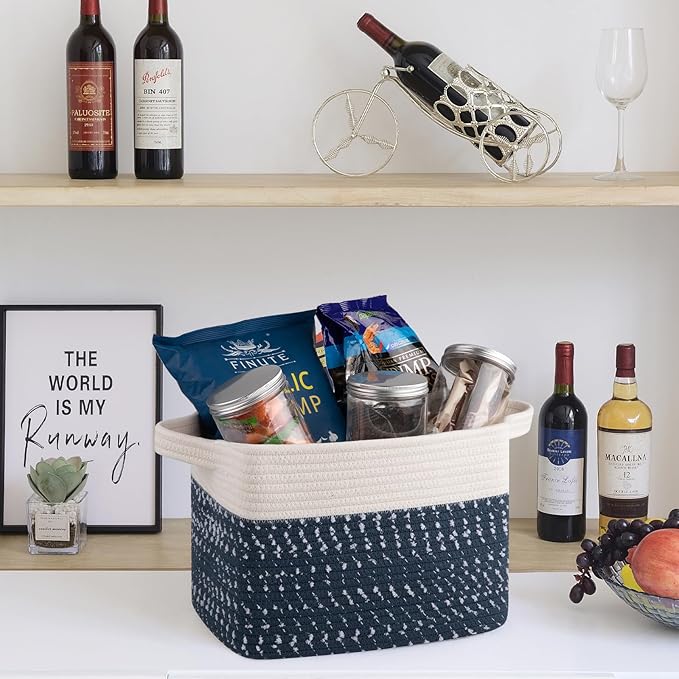 - Unique Design:Small rope basket with foldable design and separate built-In handles for easy portability and store. The handle is made of 3-heeled braided rope, comfortable to the touch, even with heavy items your hand is not restrained.In addition the storage basket available in different unique colors. Provide a nice fine Nordic touch to any room of your house
