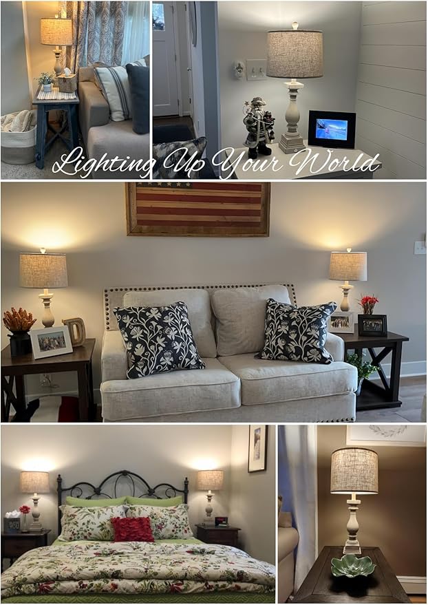 - Retro and Elegant Design:This pair of table lamps designs with an antique washed white resin lamp body and linen fabric lampshade. This lamp not only looks classic and retro, but also creates an elegant atmosphere in your home.It matches many furniture styles such as industrial style, modern style, simple&minimalist style, Nordic style, etc